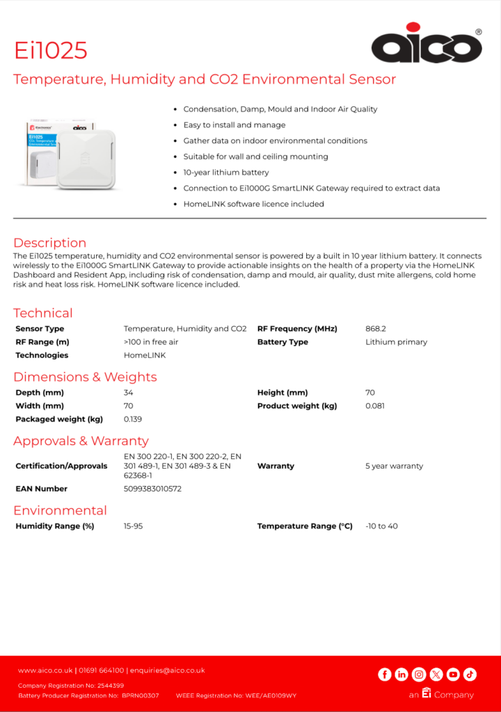 Data sheet for the Ei1025 Environmental Sensor
